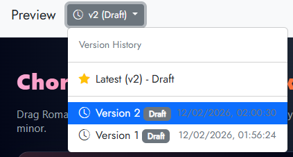 All versions of the mini app are saved, in case you need to go back to an older iteration. Use the version dropdown in the preview panel to navigate between different versions.